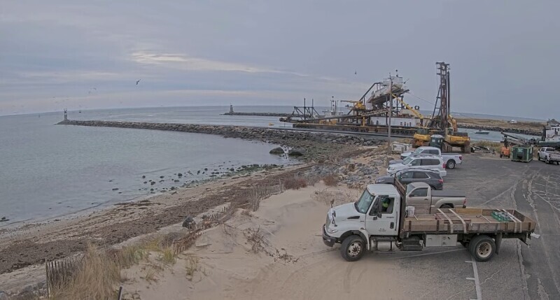 Dredging equipment has arrived on site to deepen Lake Montauk Harbor's channel depth to -17' MLLW. Town of East Hampton, N.Y. photo.