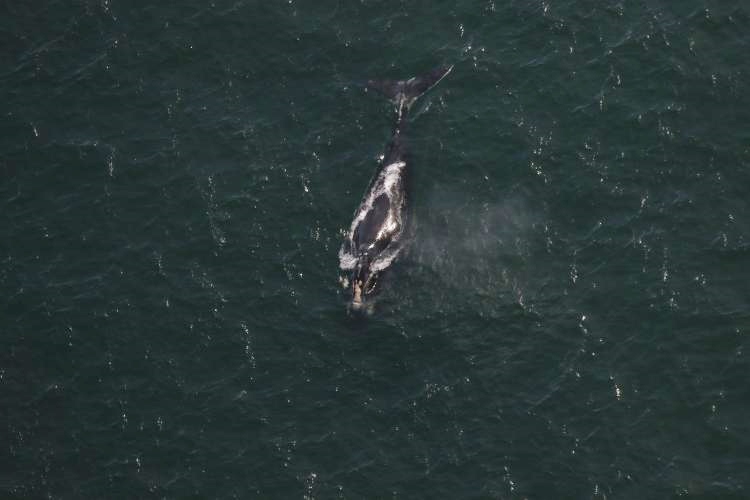 A Center for Coastal Studies aerial survey team spotted the entangled animal among several other right whales. The group sent out a response team that arrived at the scene around 1:30 p.m., removed some gear from the whale, and added a satellite buoy for tracking. The animal had a line over its head, exiting both sides of his mouth, and trailing for about three to four body lengths past its tail, according to a NOAA statement.