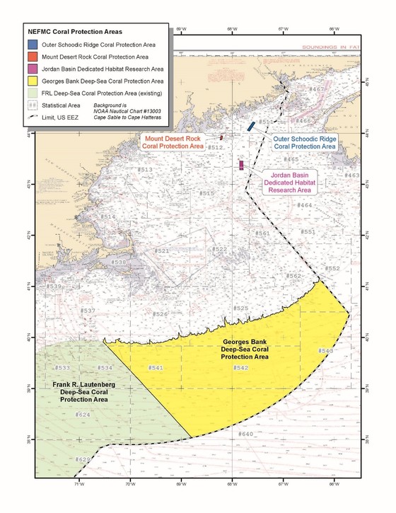 A final rule setting aside coral protection areas on Georges Bank and in the Gulf of Maine was finalized Monday by NMFS, prohibiting the use of bottom-tending fishing gear with exceptions for red crab pots on Georges and lobster pots in the gulf.