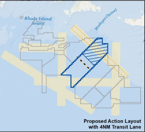 BOEM is looking at one scenario for four-mile-wide vessel transit lanes through wind energy leases off southern New England – referred to as alternative F in its supplemental environmental impact statement. That concept was proposed in January by the Responsible Offshore Development Alliance, a coalition of commercial fishing groups.