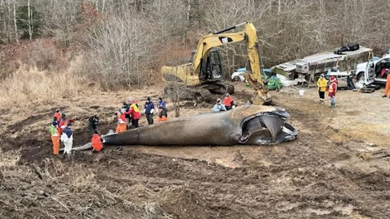 A dead female North Atlantic right whale was reported Jan. 28 at Martha's Vineyard. Woods Hole Oceanographic Institute/Michael Moore photo, NOAA permit # 24359.