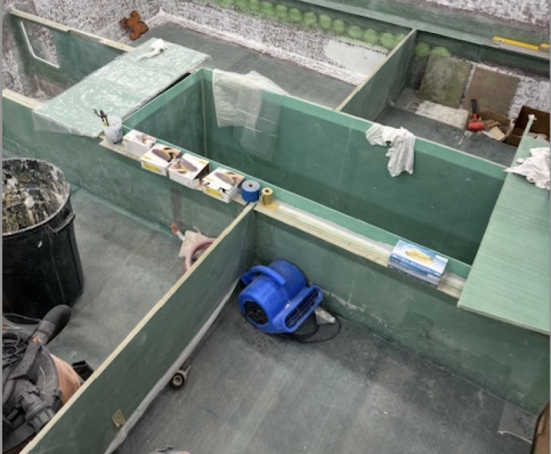 This 42' tuna boat at Samoset Boatworks has tuna storage with a below-deck 3'-square live well that will come up to the underside of the cockpit sole. Next to it will be be an insulated tuna coffin next to that another live well. Samoset Boatworks photo.