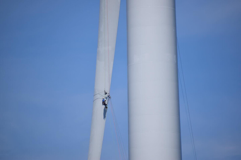 The man in the photo is an independent composite specialist for the offshore wind industry who was doing inspections and repairs of the blades. It's unclear if the work was related to the recent blade failure or whether the specialist discovered any additional issues with the blades he inspected.