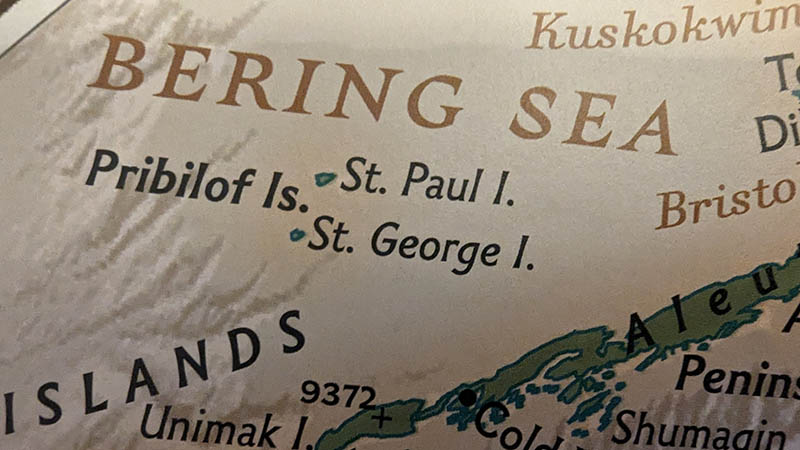 The Port of St. Paul lies on a lonely island, one of the Pribilof Islands, off Alaska's western coast. The nearest port to the Port of St. Paul is Dutch Harbor some 238 nautical miles (424 kilometers or 263 miles by air). The Port of Providenija in Russia is 473 nautical miles (824 kilometers or 512 miles by air) to the northwest of the Port of St. Paul. Formed by volcanic eruptions, the island of St. Paul covers 104 square kilometers (40 square miles).