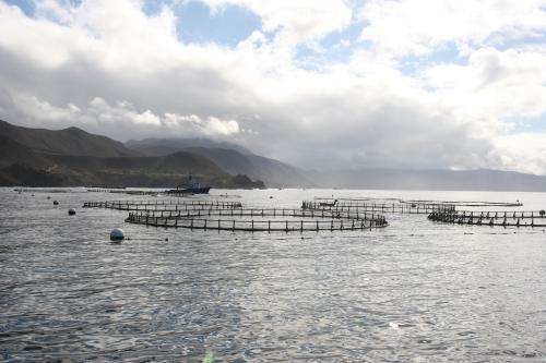 Net pen aquaculture in deep coastal waters. NOAA photo.
