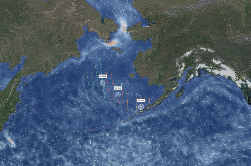 Three autonomous saildrones are deployed in the Bering Sea this summer to survey pollock abundance. Saildrone Inc. image.