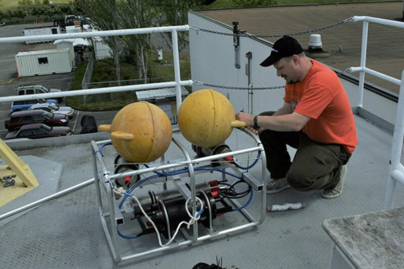 Kresimir Williams with the stereo camera system. Credit: NOAA Fisheries.
