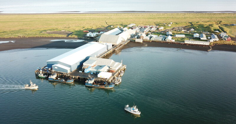 Located at the northwest corner of Alaska’s largest island, Trident’s Kodiak facility operates a fully automated H&G production line for Alaska pollock and salmon. Photo by Trident
