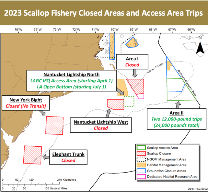 The New England Fishery Management Council has set aside four closed areas for the 2023 fishing season. NEFMC graphic.