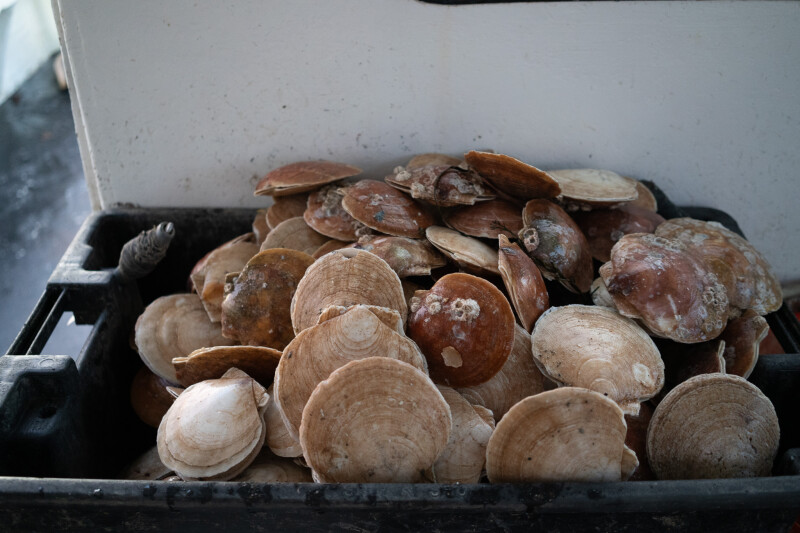 Atlantic scallop landed on deck. Ben Hayden photo.