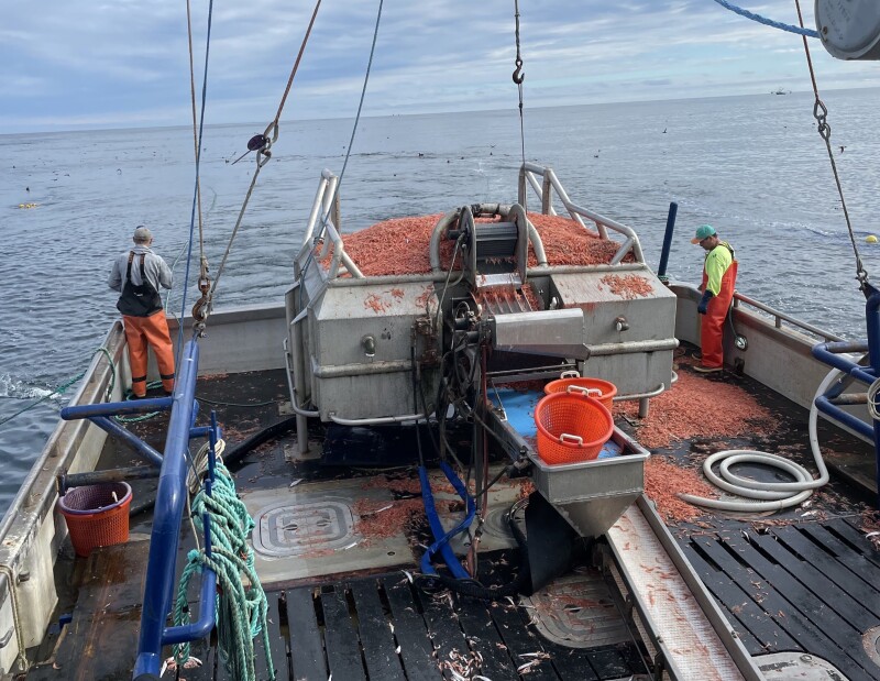 While ASMFC data indicate a collapse of northern shrimp, Pandalus borealis, stocks and recruitment in the Gulf of Maine, 59 boat in the Pacific Northwest landed 41.2 million pounds of a similar species, Pandalus jordani, in 2022. Photo by Ben Downes