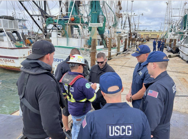 Sector St. Petersburg Incident Management crews and pollution responders respond to a sunken vessel, Miss Jordi, diesel spill off Tampa Shrimp Docks, Dec. 17, 2023. The vessel was reported to have about 2,000 gallons of fuel on board. Coast Guard photo.