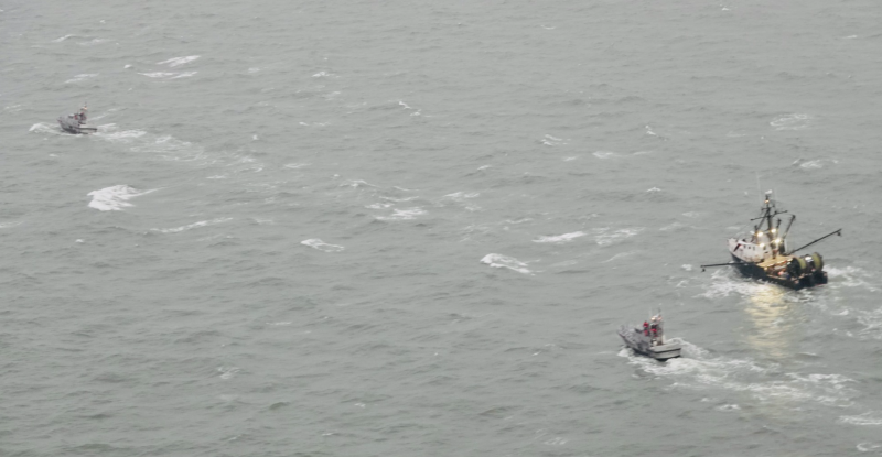 The Rhode Island squid trawler Yankee Pride under tow by the Coast Guard after becoming disabled 90 miles off New Jersey Dec. 15, 2022. Coast Guard Station Atlantic City photo.