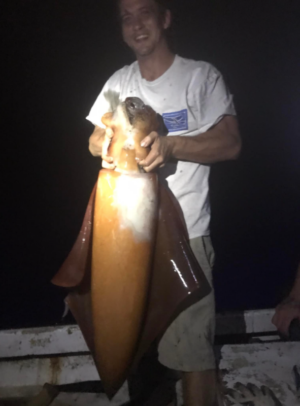 Nikko Eterovich holds the 33-pound squid caught off the coast of Hawaii in February. Facebook photo