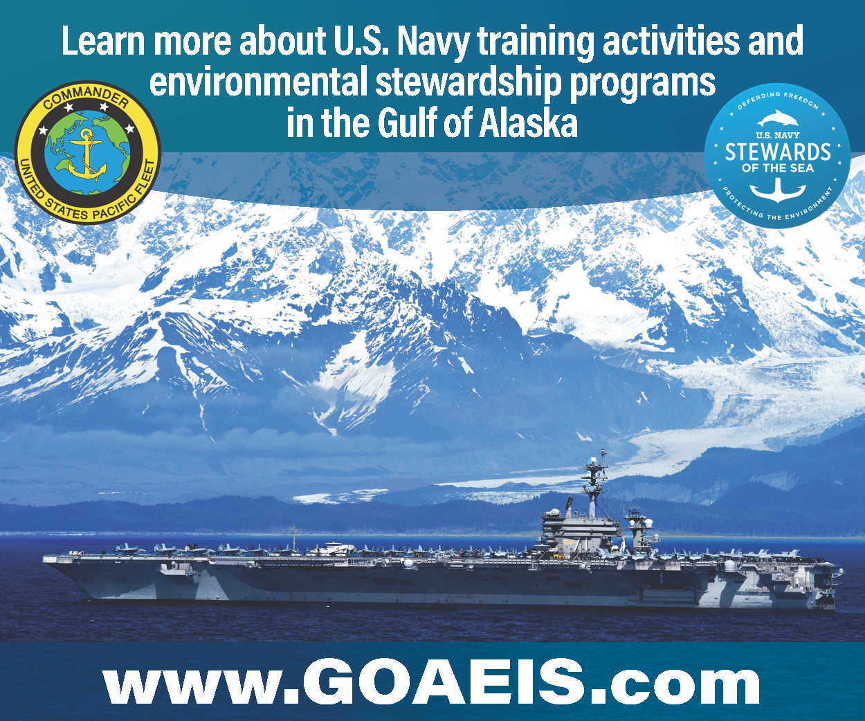 The Gulf of Alaska provides invaluable training space needed to realistically train U.S. service members to protect and defend the United States and its allies. Northern Edge exercises are Alaska’s largest joint training exercises and occur biennially (typically every other year in odd years). The Navy has participated in Northern Edge exercises since the 1990s. During this exercise, the Navy takes actions to avoid or minimize impacts on the marine environment and marine species. The Navy is also a world leader in marine species research and monitoring efforts. To learn more, please visit www.navymarinespeciesmonitoring.us.