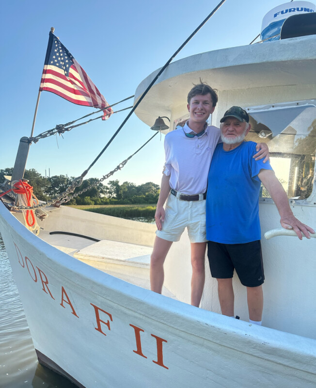 City Market sells seafood to the nearby Sea Island Resort, and Owens recalls that when the resort wanted a boat to take people out and show them the local waters, he recommended the Dora F. "They did that for about three years, until she sank, and now they do it with the Dora F II."