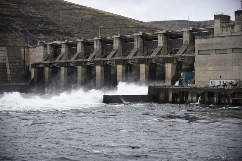 The Lower Granite Dam, in southeastern Washington, is the furthest upstream dam on the Snake River equipped with a fish ladder, enabling adult salmon and steelhead to continue their migration upstream. Photo by Noe Gonzalez / U.S. Army Corps of Engineers Walla Walla District.