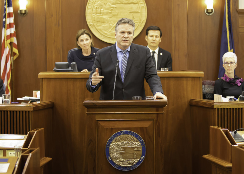 Alasak Gov. Mike Dunleavy delivers the State of the State address in January 2019.