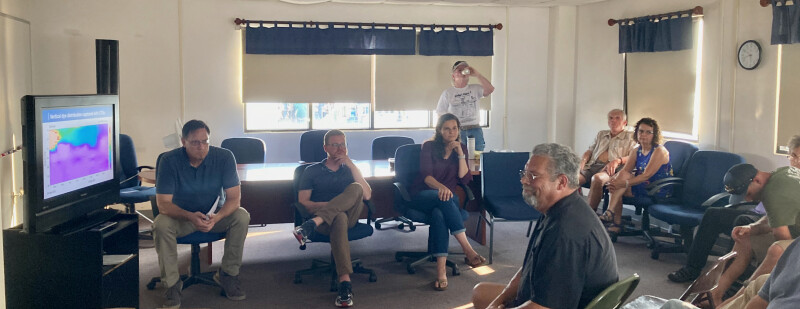 Rhode Island fishermen converse with WHOI researchers from the LOC-NESS project in Point Judith on August 14. Photo by Schumann
