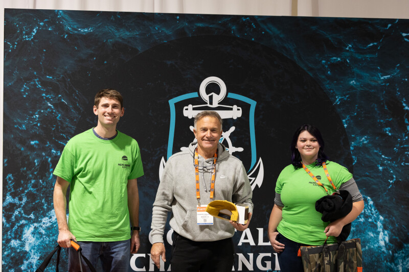 Rodewald was first to finish, with multiple attempts at the seemingly tricky mouth flap, followed by Jackson and Cracchiolo. Rodewald completed the task in under a minute, taking home $400 and a submersible Grundens duffel. Jackson won a Scow sweatshirt along with a Rugged Seas backpack and hat. Cracchiolo earned a two-night stay at the Alexis Royal Sonesta Hotel, plus an XtraTuf hat, coozie, and discount code.