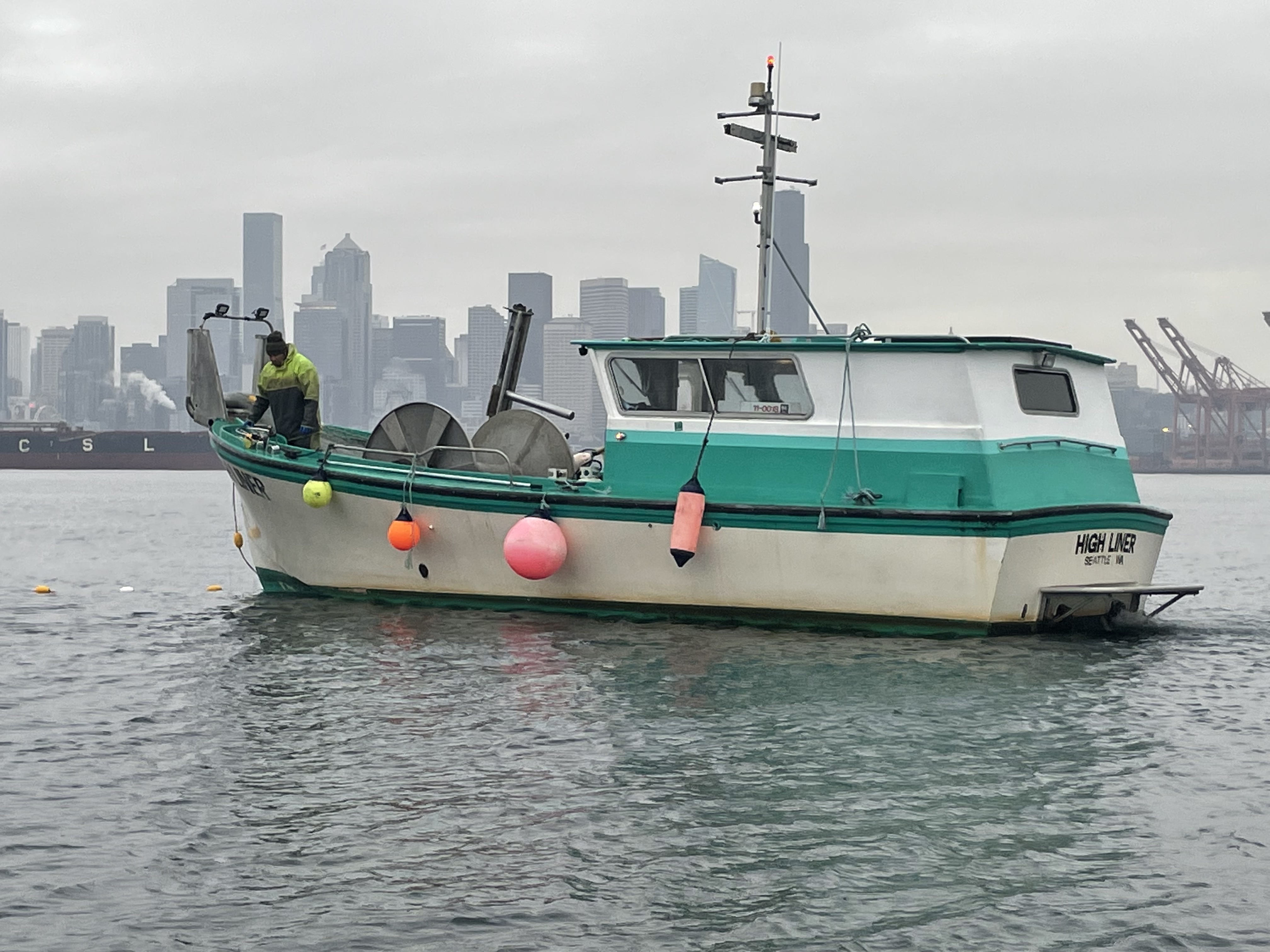 Clouds blanket Puget Sound and the rain starts at dawn. “Do you have oil gear?” Leeroy Courville asks as we sit in the wheelhouse of his boat, the High Liner.